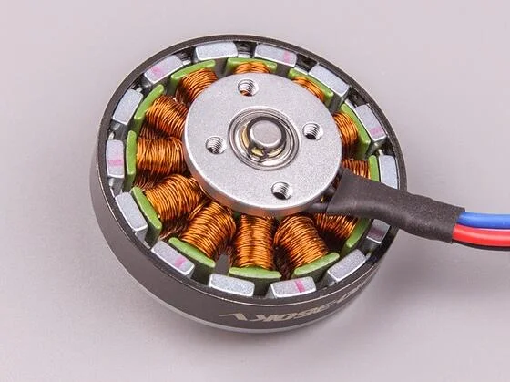 Например, если двигатель 2300 кВ с аккумуляторным двигателем 3S для квадрокоптера, подключенным к его концам, то двигатель будет вращаться со скоростью 2600×12,60 = 32 760 об / мин (обороты в минуту — количество оборотов в минуту) без пропеллеров. Скорость вращения постепенно снижается из-за сопротивления воздуха.