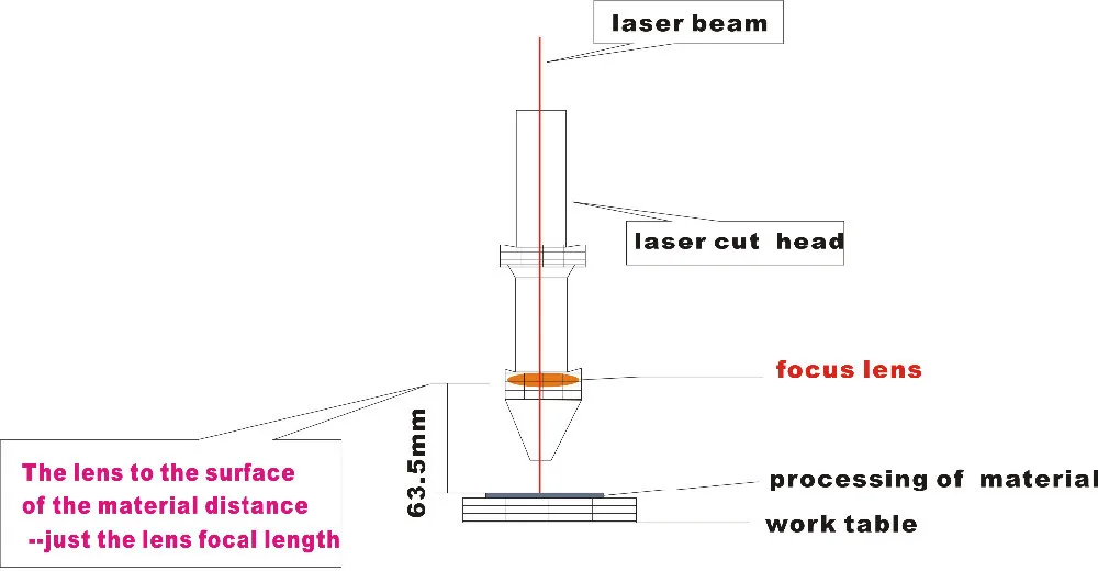 Если двумя словами, то фокусное расстояние это расстояние от линзы до фокусной плоскости. В нашем случае за фокусную плоскость принимаем заготовку — металлический лист.