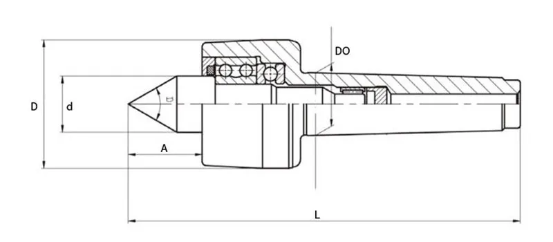Вращающийся центр состоит из конического наконечника, вала и подшипника, размещенного в стальном корпусе.