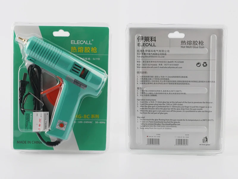 Термопистолет упакован в блистер, но, благо, не запаянный. На обратной стороне полно информации, но она почти вся на китайском языке.
