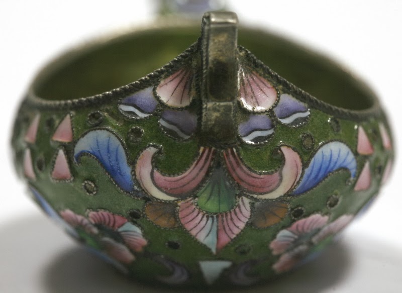 При выполнении перегородчатой эмали эмальер заполняет небольшие проволочные корпуса смоченными частицами эмали, а затем обжигает.